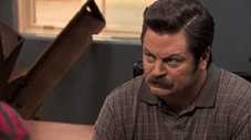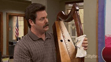 Leslie and the parks department bicker as they work on a proposal for a new town hall mural, while Ron and Andy share an awkward moment at Andy's new shoe-shine job. |