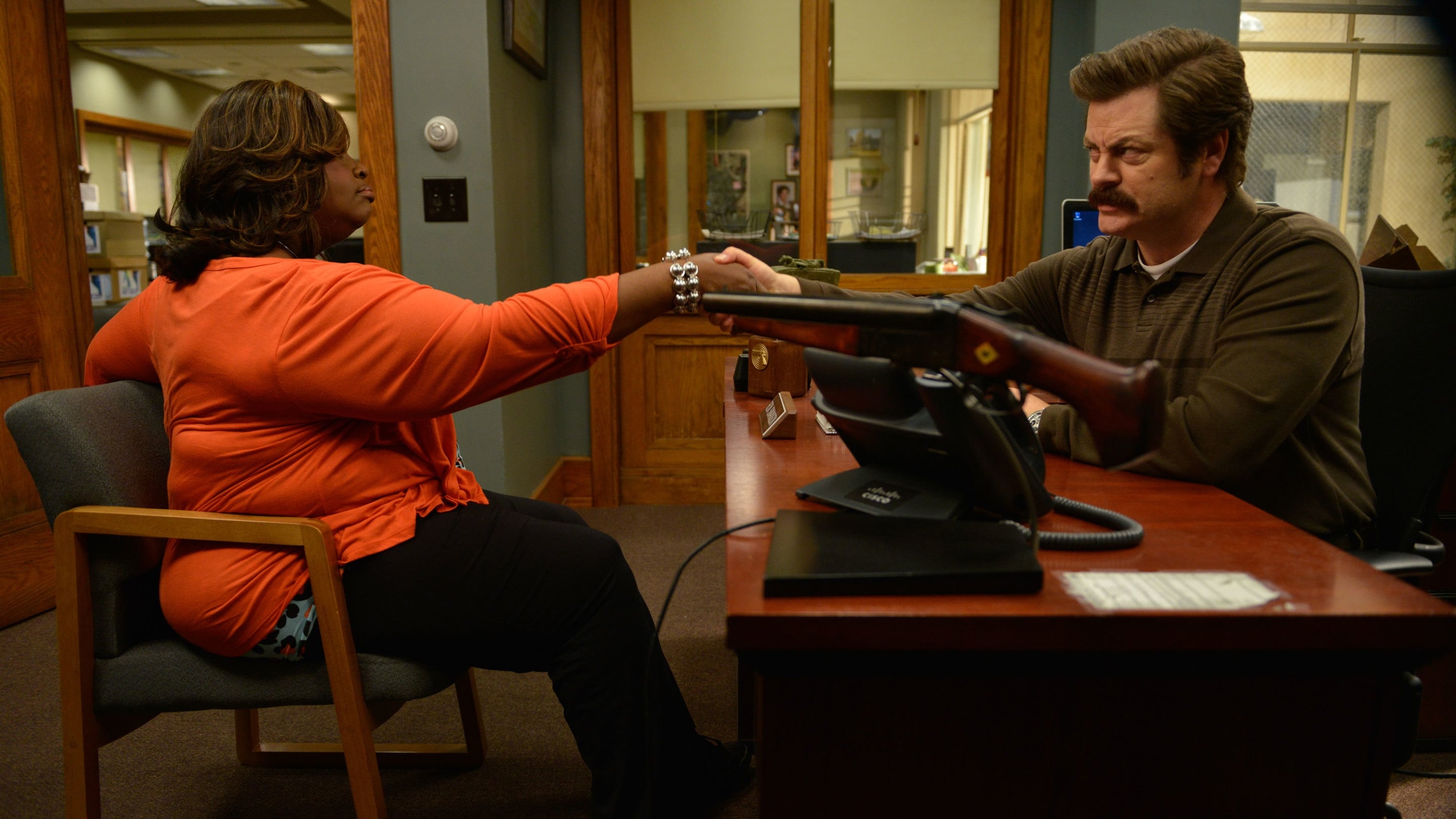 Leslie and Ben run a charity auction to raise funds for the unity concert. April steps in to manage Andy’s schedule, while Donna asks Ron for help with her ex-boyfriend.